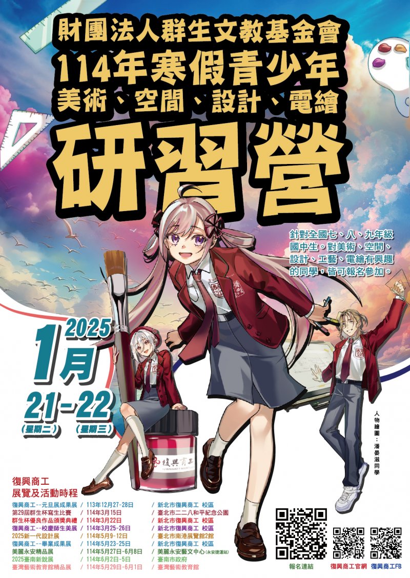 三、參加對象:凡全國國中七、八、九年級,對美術、設計、工藝、電腦有興趣者,皆可報名參加,有報名學生之國中老師,可免費參加研習營(各班別限 5 名老師,額滿為止)。