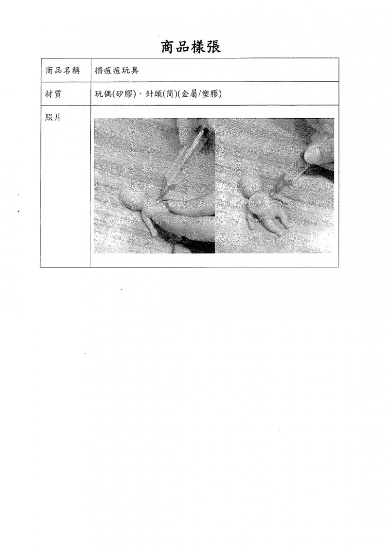 (一)旨揭商品係矽膠材質玩偶及附有針頭(筒)之成套商品,屬經標局公告應施檢驗玩具商品範圍。