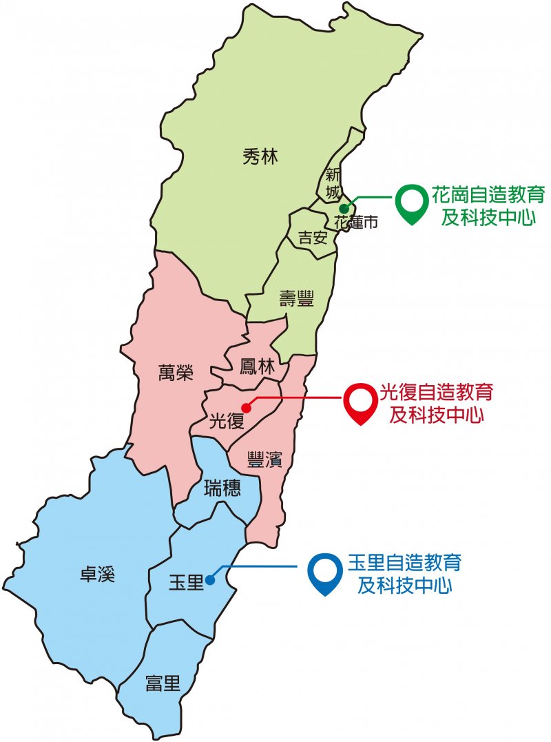 3、請申請學校參考本縣科技中心推廣服務區域分配並規劃 協作。(北區:花崗國中、中區:光復國中、南區:玉 里國中)。