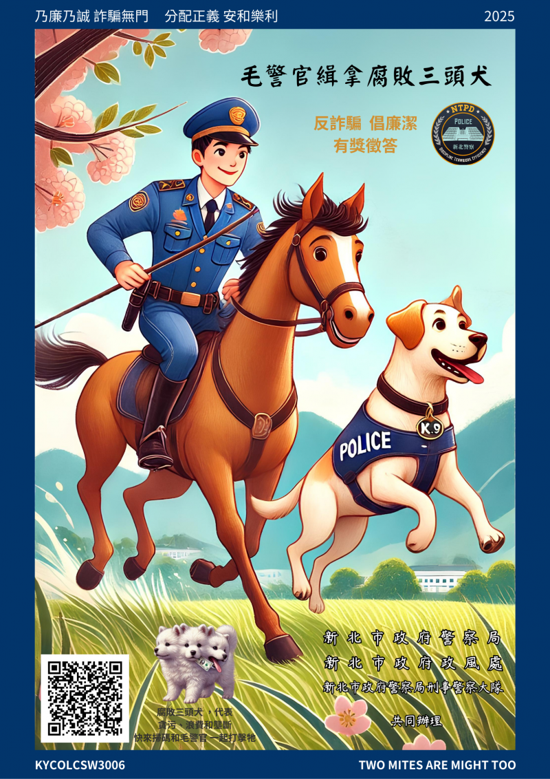 二、鑑於當前詐騙現象猖獗,已為國人極關切之治安問題,亦是許多國家正面臨之挑戰,且其與社會結構及廉政反腐敗之間,同樣存在著密切關聯。為追求社會廉潔公義與和諧安定,並倡導重視清廉價值,尤以有關實踐「分配正義」此一具有仁民愛物襟懷之積極價值,進以實現安和樂利、 Leave No One Behind (不遺漏一人)之永續發展目標;基前,該局特辦理旨揭有獎徵答活動。前開活動相關資訊如下: