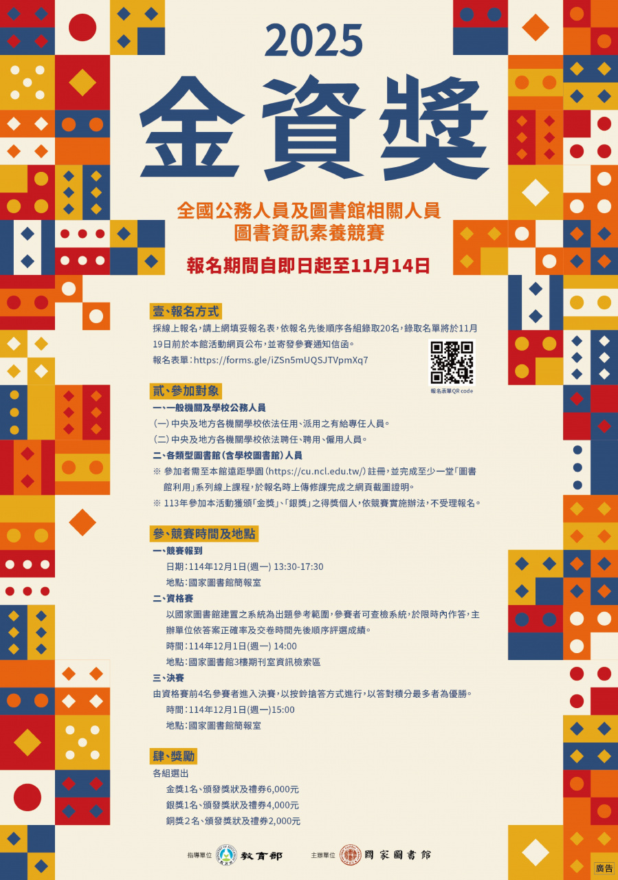 競賽與徵稿 林東標 - 圖書室 | 2025-10-20 | 點閱數: 6
