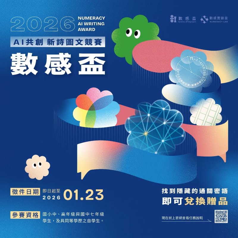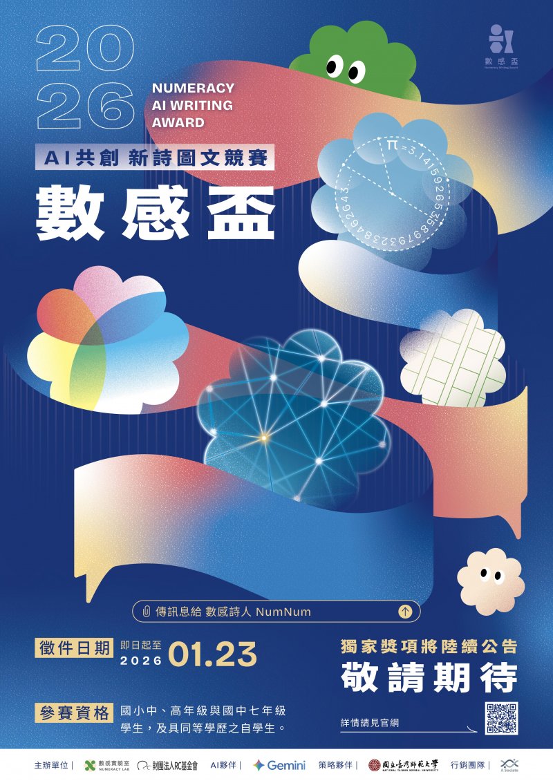 三、 AI 共創新詩圖文競賽相關事宜請參考附件,官方網站: https://ai-award.numeracylab.com/。