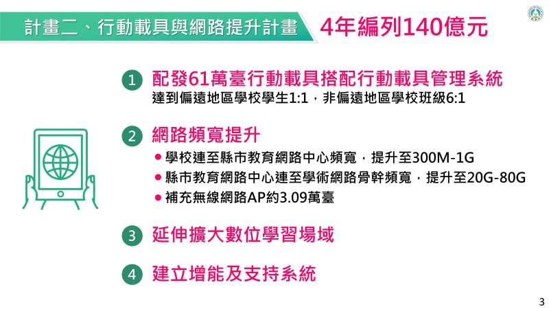 【教育部新聞稿】 班班有網路 生生用平板-全面推動中小學數位學習精進方案