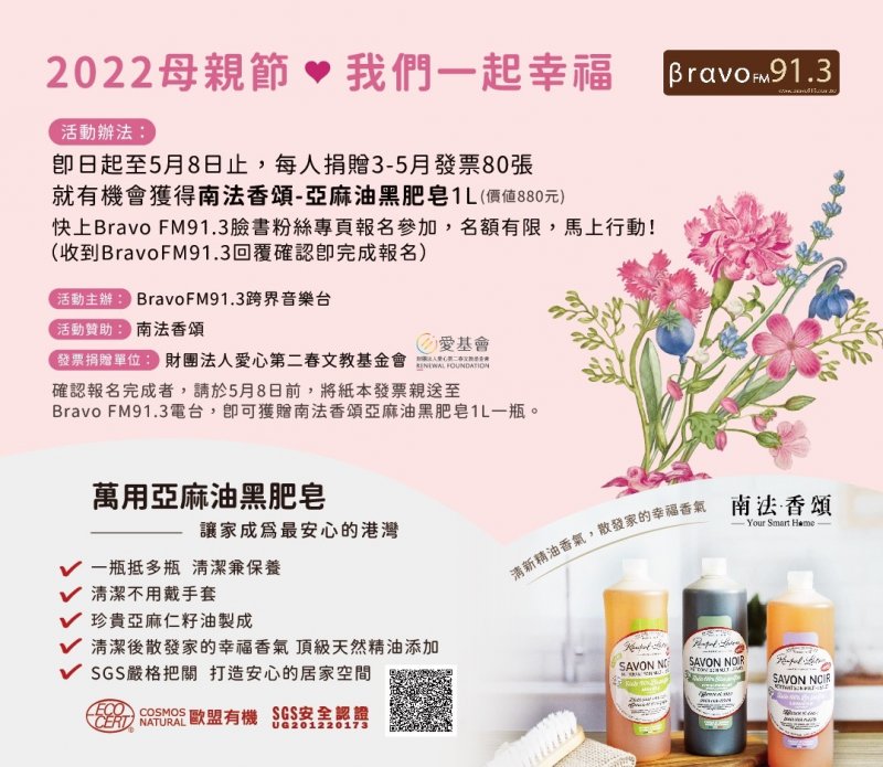 財團法人愛心第二春文教基金會【2022母親節 我們一起幸福】發票募捐公益計畫開跑囉